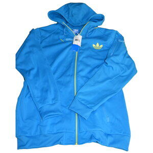 Adidas Men's Large C90 Hoodie, Full Zip, Turquoise, Vivid Yellow, NWT, RARE