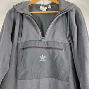 Adidas Mens Large Fleece 1/4 zip Pullover Hooded Sweatshirt Zip Pocket Gray