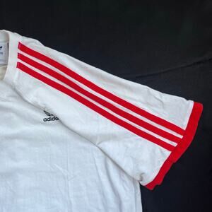 Adidas Men’s Medium White Shirt Red 3-Stripes Athletic Tee Short Sleeve