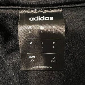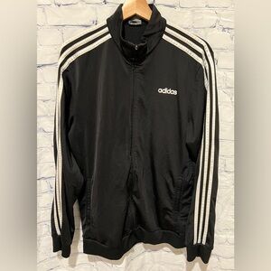 Adidas Mens Midweight Track Jacket large. Please see the picture as the zipper head is broken but does not affect zipping of the jacket. 21” pit to pit and 28” long. Smoke free home.