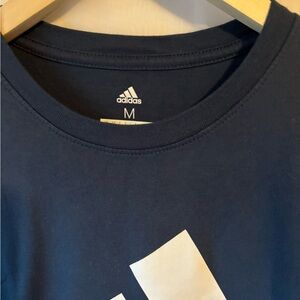 Classic navy tee with bold Adidas logo. Perfect for casual outings.