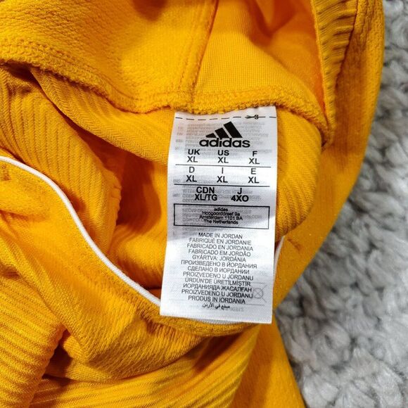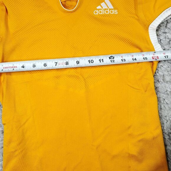 Men's Adidas Primeknit A1 football jersey compression top in gold. Style number dq3452. In good condition with no flaws noted. Men's size XL, real measurements shown in photos with top laid flat: