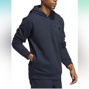 NWT, Pull On, Navy blue with black embroidered Adidas hoodie.