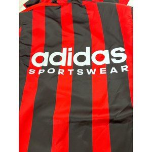 0837A- Men’s Adidas Coaches Satin Track Jacket, size XS, red & black vertical stripes, triple bar, white logo at left chest, triple white stripes down each arm. Color: Better Scarlet”. Release: 10/22, HS3302. M XPRESS COA JK. Multi sport, 5.5 inch side slit vertical pocket with zip closure.”adidas Sportswear” white graphic on back. 20” shoulder to shoulder, 41” armpits 40” waist, 39.5” hips, 25.5” long, 25” arm length, 9” wrist opening. straight, Hemline with black drawcord. 100% recycled polyester. Lining 100% recycled polyester. End plastic waste. Full snaps closure. Fold over collar. Machine wash cold, delicate cycle, non-chlorine bleach if needed, tumble dry low, cool iron, do not dry clean, wash and iron inside out with light colors with fasteners closed. Made in Vietnam. New with tags.
