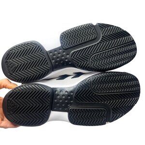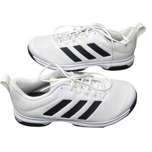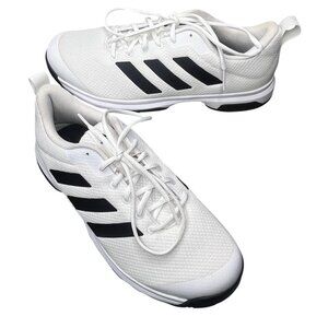 These Adidas men's size 10.5 sneakers are designed for optimal comfort and performance. Lightweight and breathable, their mesh and rubber design is perfect for running. The color scheme is a sleek white and black.