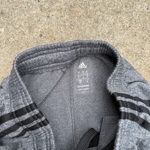 Men’s Adidas track pants in size Small. Heathered gray with classic black triple stripes down each side and Adidas logo on the front hip. Straight leg fit with elastic waistband and breathable stretch fabric. Perfect for the gym, lounging, running errands, or warmups.