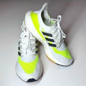 Adidas Men’s Ultraboost 21 Athletic Running Shoes - White and Neon Yellow Size-7
