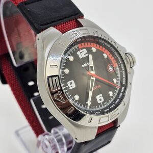 Adidas Men's Watch 40MM Black Dial Date New Red Black Canvas Bands New Battery