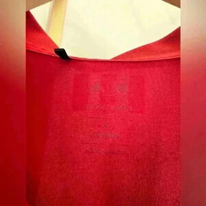 Elevate your casual wardrobe with this Adidas Men's Polo in a vibrant red. Designed for comfort and style, this short-sleeve polo features a breathable knit fabric that keeps you cool during those warm summer days. The spread collar and pullover closure offer a relaxed yet polished look, perfect for any casual occasion. Accented with the iconic Under Armour logo, this polo is both stylish and functional. Easy to care for, just toss it in the machine for a quick wash. This pre-owned piece is in great condition, ready to become a staple in your collection.