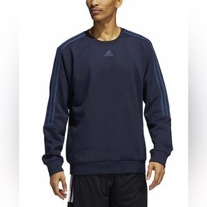 Adidas Men’s sz L Long Sleeve 3 Stripe Fleece Crew Sweatshirt Pullover Navy Blue