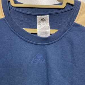 Adidas Men's Round Neck Color Block Blue Tan Pullover Long Sleeve Top Size XL