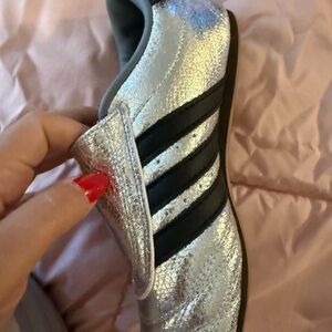 Adidas Metallic Silver Soccer Cleats with Black Stripes
