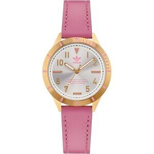 Type of mechanism: QUARTZ.Display: ANALOGICAL.Material Of Case: STAINLESS STEEL.Colour Of Case: GOLDEN.Material Of Bracelet: LEATHER.Colour Of Bracelet: PINK.Dial Colour:GREY.Glass type: MINERAL.Clousure: BUCKLE.Water resistence: 5ATM.Diameter dial: 36MM.Special Functions:ADIDAS EDITION THREE