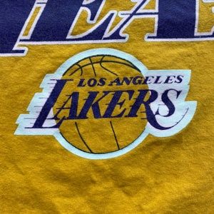Awesome shirt! Official Giveaway at a Lakers game a few years ago! Rare. Minor stains on bottom inside of shirt. Barely shows through. Also minor stain on upper left hand corner. See pics. Can possibly be removed or improved with stain remover or soaking. Only worn a few times. I honestly love this shirt but I have wayyy too many Lakers shirts lol. I try to be as honest as possible so please ask any and all questions before purchasing! Thanks ๐๐ผ๐๐
