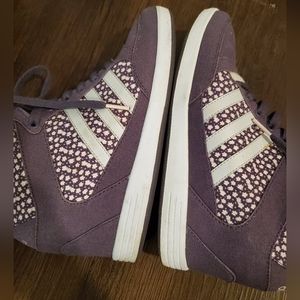 hidden super wedge 65 mm high top in purple and white with three white synthetic leather stripes and synthetic suede with small flower print