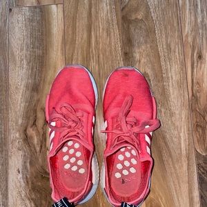 Bright salmon Adidas NMD’s. These have been worn maybe 4 or 5 times but are in great condition. There is a small stain on the front toe from mud but other than that they are in almost perfect condition!!