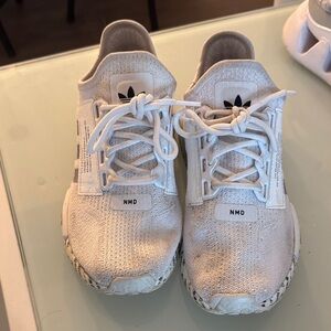 Adidas NMD sneakers in off-white. Sleek and versatile design.