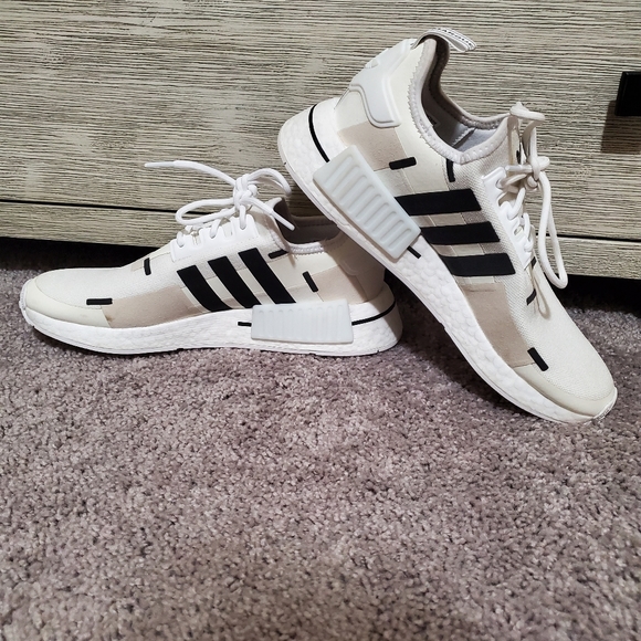 Adidas Men's NMD R1 size 7.5. Color is white/off white? With black stripes. Only worn once indoors. Great condition.