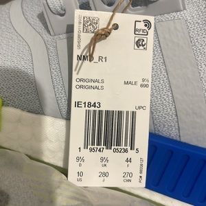 Brand New in box Adidas NMD_R1. Bought them for hubby but they are too small so I need them gone. Send me a good offer and they’re yours. Lowball and you will be ignored. Plus I threw in free shipping so this is a steal ! Happy poshing!