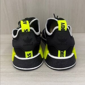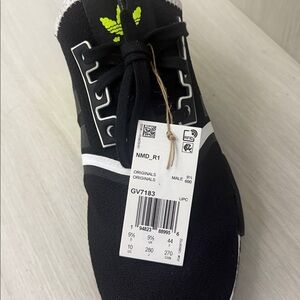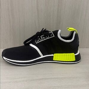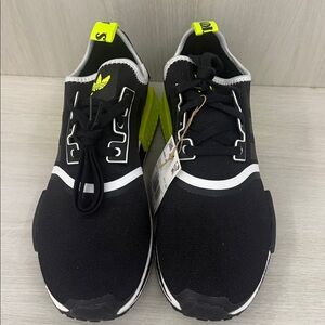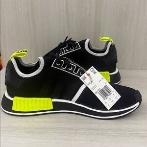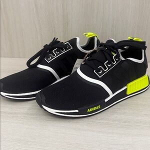 Bold Adidas sneakers in black with neon green accents. Stylish and comfortable for any occasion. Adidas NMD R1 in size 10 brand new never worn. Doesn’t come with the original box and are exactly as pictured.