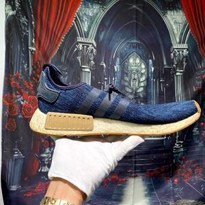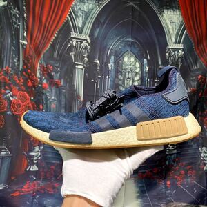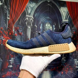 Step out in style and comfort with these popular Adidas NMD R1 sneakers. This pair, identified by the style code CQ0859, is sized Men's 10 and features a sophisticated navy blue mesh upper with a subtly heathered texture, making it a versatile addition to any athletic or casual wardrobe.