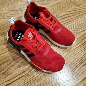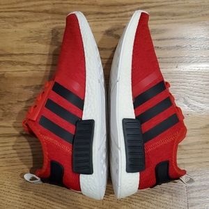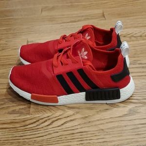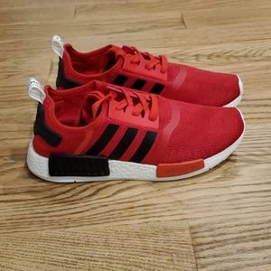 Rare Adidas NMD R1 Core Red w/Black Stripes. Hard to find and Sold out Everywhere!!! Like new with little to no signs of use. Worn gently only once. Very clean EUC. They are size 8.5 men/ 10 women. Perfect gift for yourself or a loved one. Get them NOW before it's too late! Smoke and Pet free