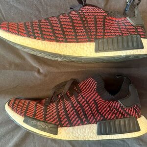 This model features a core black and solid red with accents on the heel pull tabs. Only worn a couple times. These NMD’s are arguably some of the most comfortable sneakers ever made… They literally feel like socks! In great condition! Comes from a pet free/smoke free home. No longer have the original box. Feel free to make an offer !