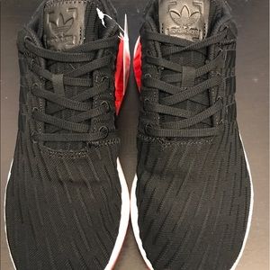 Adidas NMD R2 Primeknit shoe size 8.5 black/red