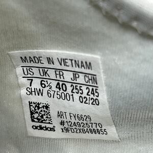 Colors: White knit upper with green and red Boost midsole; black 3-Stripes