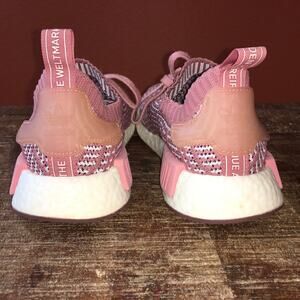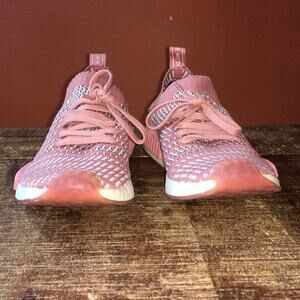 Adidas NRD R1 STLT Primeknit Boost Sneaker in color Ash Pink (Pink and white). Womens size 7.5. Model CQ2028. Condition as seen in pictures. Slip on.