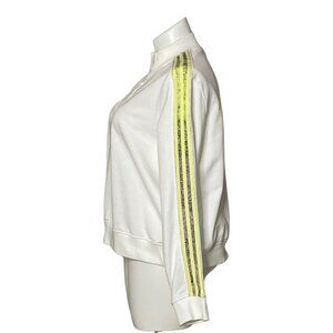 Adidas NWT White Half-Zip Sweatshirt Neon Yellow Logo Stripe Sleeves Women's 2XL