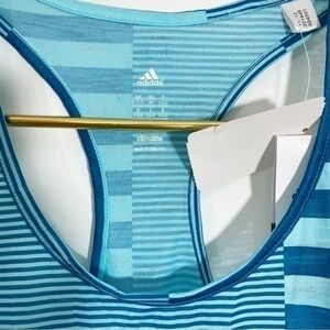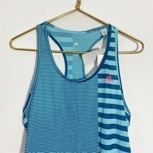 Adidas NWT‎ Womens Turquoise Blue Striped Racerback Tank Top Shirt