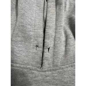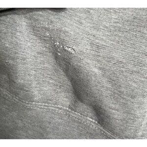 Fair condition hoodie is missing drawstring, has several flaws to the fabric, please see photos.