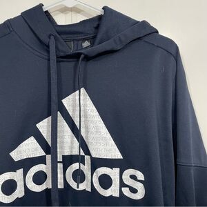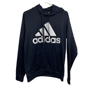 Gently worn men's size medium adidas navy blue logo graphic pullover hoodie sweatshirt. Please review all photos for any signs of wear-pictured as is. Disclaimer: Any items with any wear/staining has not been treated, and unsure of ability to remove/treat condition. Comes from a smoke free home, bundle with other items to save & minimize shipping cost.