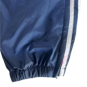 Comfortable navy blue track pants with elastic waistband. Ideal for sports and casual wear.