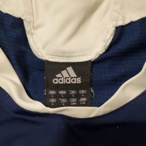 Navy sleeveless top with white trim. Ideal for sports and casual wear.