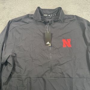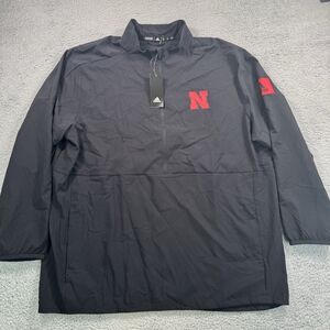 Adidas Nebraska Cornhusker Jacket Mens XXL Black 1/2 Zip Windbreaker NWT