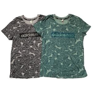Adidas Neo Short Sleeve T-Shirts Tee Leaf Print Womens Spellout Athletic Workout