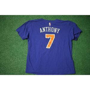 Show your team pride with this Adidas New York Knicks Carmelo Anthony #7 T-Shirt in XL! Featuring the iconic Knicks logo, bold "New York" text, and Anthony's name and number on the back, this classic blue tee is perfect for basketball fans.