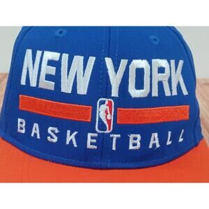 Adidas New York Knicks vintage basketball gat with embroidered logo. Structured profile hat, with quality front and back embroidery. Classic six-panel construction with eyelets. Embroidered side logo from adidas. Two shades in real team colors and orange. Used an occasion in excellent condition.