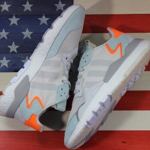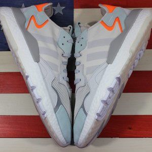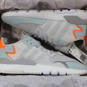 Up for grabs is a pair of men's Adidas Originals Nite Jogger Boost running shoes, in the Raw-White/Grey/Vapor-Green/Orange colorway. Please make sure to inspect all twelve high-resolution photos, and ask all questions before purchase. These shoes are in new condition, and will arrive in their original box. Shoes are GUARANTEED 100% AUTHENTIC. [BD7956]