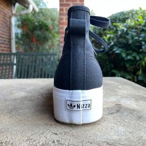 Nearly new pair of Adidas Nizza Platform Mid, black w/ white stripes. A few light smudges on sides of soles (see photos). Womens size 9.5/Mens size 8-8.5.