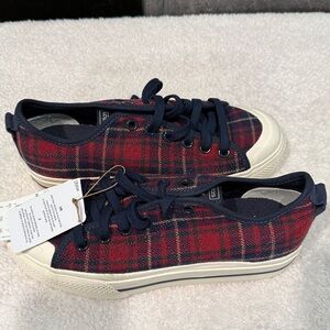 Brand new super cute red and blue plaid platform sneakers with blue laces. Tag still attached. I just have too much stuff!