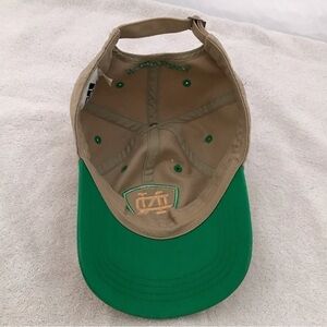 C8 Hat/Cap Adidas Made in Taiwan Adult Adjustable Strap with Buckle Notre Dame “ND” patch in greengold on face +fighting irish type on rear in green + adidas logotype on side and aim reunion 2005 on other side; both in gold / tan with green accents and green underbill. The University of Notre Dame du Lac, known simply as Notre Dame (/ˌnoʊtərˈdeɪm/ NOH-tər-DAYM; ND), is a private Catholic research university in Notre Dame, Indiana, north of the city of South Bend.[7] French priest Edward Sorin founded the school in 1842. The main campus covers 1,261 acres (510 ha) in a suburban setting and contains landmarks such as the Golden Dome, the Word of Life mural, Notre Dame Stadium, and the Basilica. Originally for men, the university did not formally accept undergraduate female students until 1972.[8] 100 % Cotton