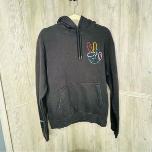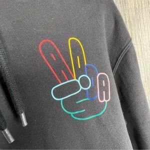 Adidas Fleece Hoodie with Colorful Peace Sign Graphic. Laid Back Comfort, Positive Energy. Approx measurements pit to pit 23”, Length from Shoulder to Hem 25”