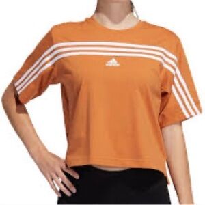 Adidas- Orange Crop Shirt- White stripes- Size M