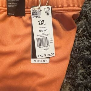 These vibrant orange sweatpants from Adidas feature the iconic three white stripes along the sides, offering a stylish and sporty look. Made from a durable synthetic fabric, they provide comfort and flexibility for any athletic activity. Perfect for both casual wear and workouts, these joggers are a must-have for any active wardrobe.