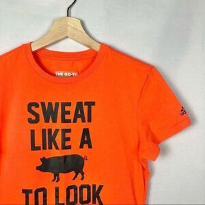 Adidas Orange Ultimate Climalite Tee Sweat Like a Pig Look Like a Fox T-Shirt S