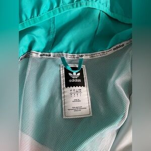 This Adidas windbreaker combines a sleek white base with vibrant orange accents, offering a stylish and functional choice for outdoor activities. Its lightweight construction ensures comfort and protection against the wind, making it perfect for active pursuits. The modern design adds a touch of flair to your athletic wardrobe.