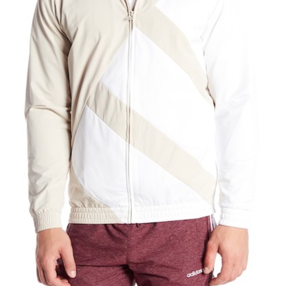 adidas track jacket. bold track jacket. Brown and white. windbreaker.